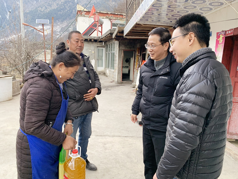在小金县潘安乡,徐书记带队查看并了解了我院驻村干部邓超同志的生活、住宿等相关情况,并就如何进一步帮扶助力当地经济发展深入潘安乡进行走访调研。徐书记对我院驻村干部的辛勤工作表示了肯定,希望他能继续保持我院驻村干部历来的优良传统,对他长期坚守驻村岗位的精神给予高度赞扬,叮嘱他注意防寒保暖,并代表院党委向邓超同志及其家人送去了亲切问候和春节祝福。