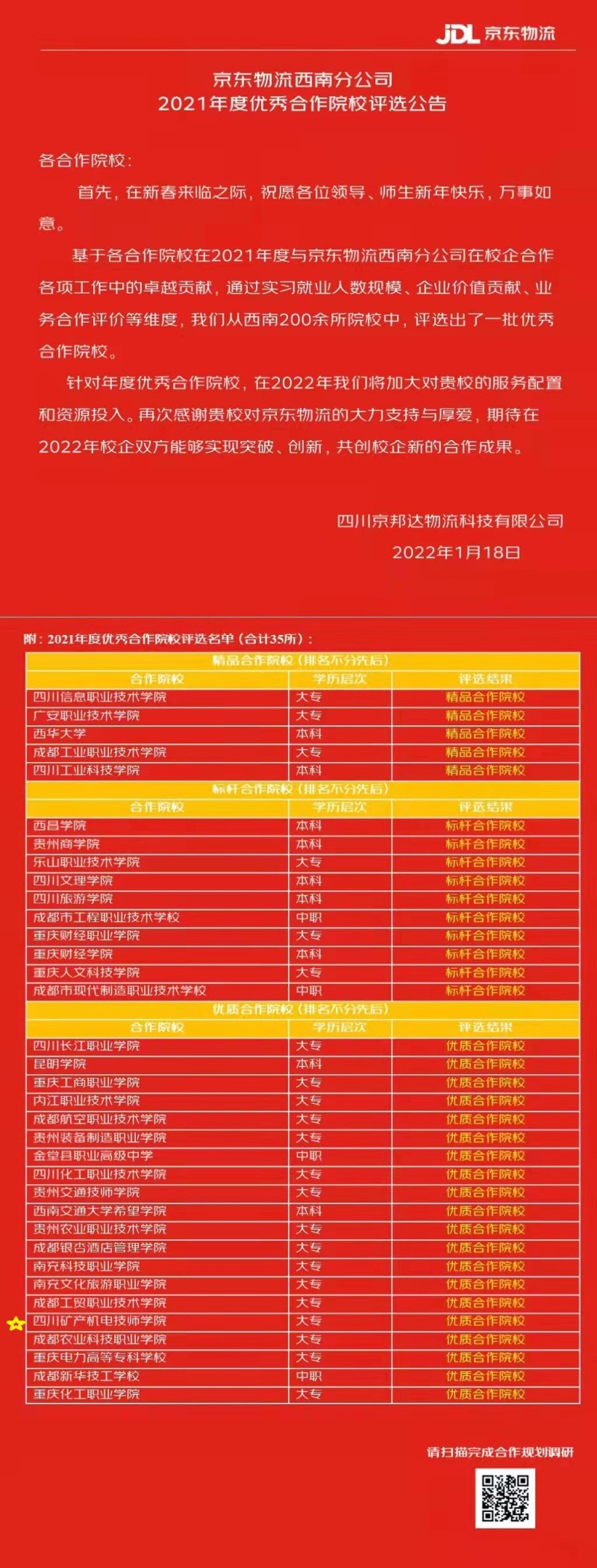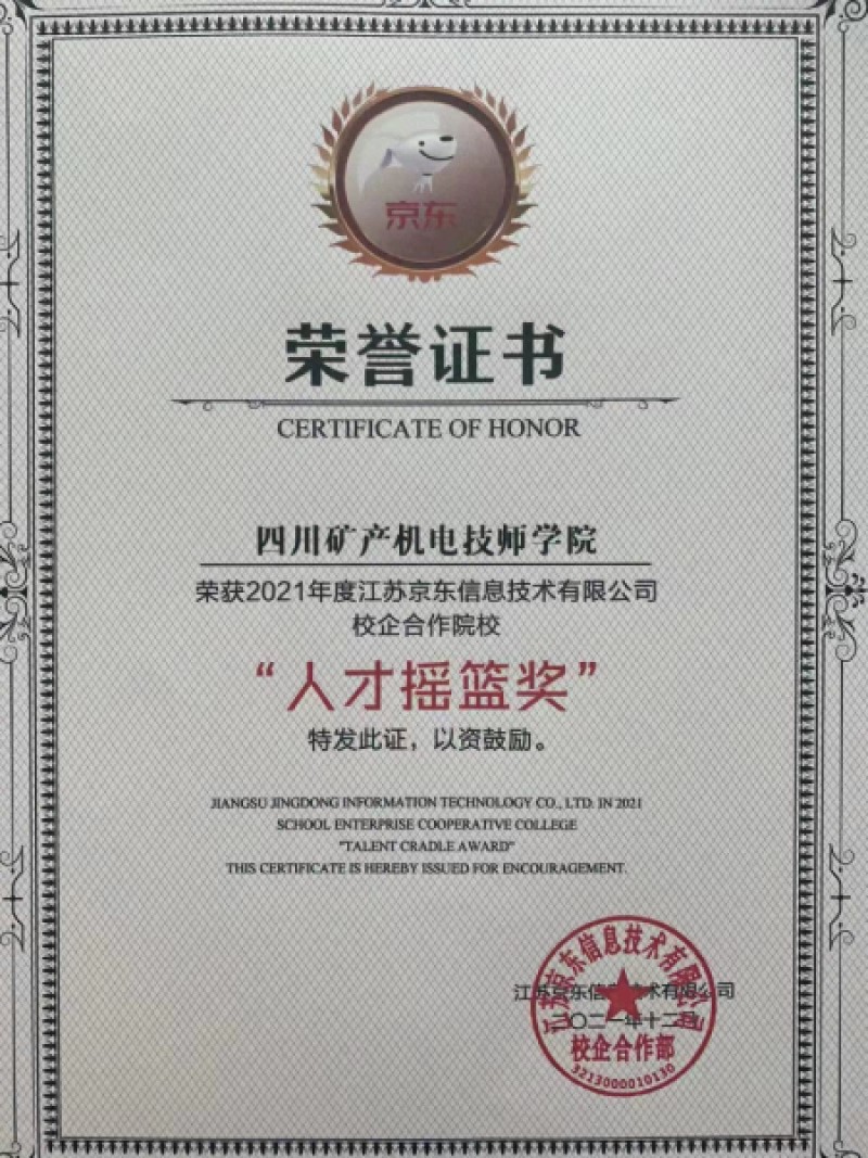 近日,我院在2021年度京东客服实训和物流实训中分别获得人才摇篮奖、优质合作院校奖项。