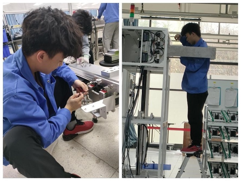 电气自动化专业学生调试机电设备