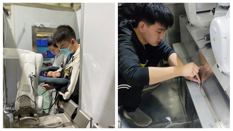 工业机器人专业学生调试智慧餐饮设备