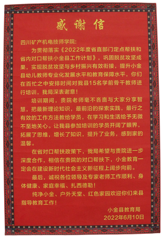 此次培训是四川省地矿局贯彻落实省对口帮扶小金县工作的重要环节,在局统一安排和部署下,学院多次积极与小金县教育局对接,致力于为小金县幼儿教师专业化发展水平和保教水平的提升创造学习环境,助力小金县提高普惠性公共服务水平,为乡村振兴工作添砖加瓦。