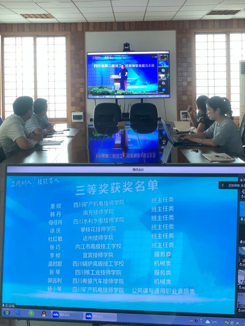 8月17日下午,由四川省人力资源和社会保障厅主办、四川城市技师学院承办的四川省第二届技工院校教师职业能力大赛完美收官,并通过腾讯会议举行线上闭幕式。经过三天的激励角逐,我院教师杨小琴获得教学赛三等奖、董欣获得班主任赛三等奖。