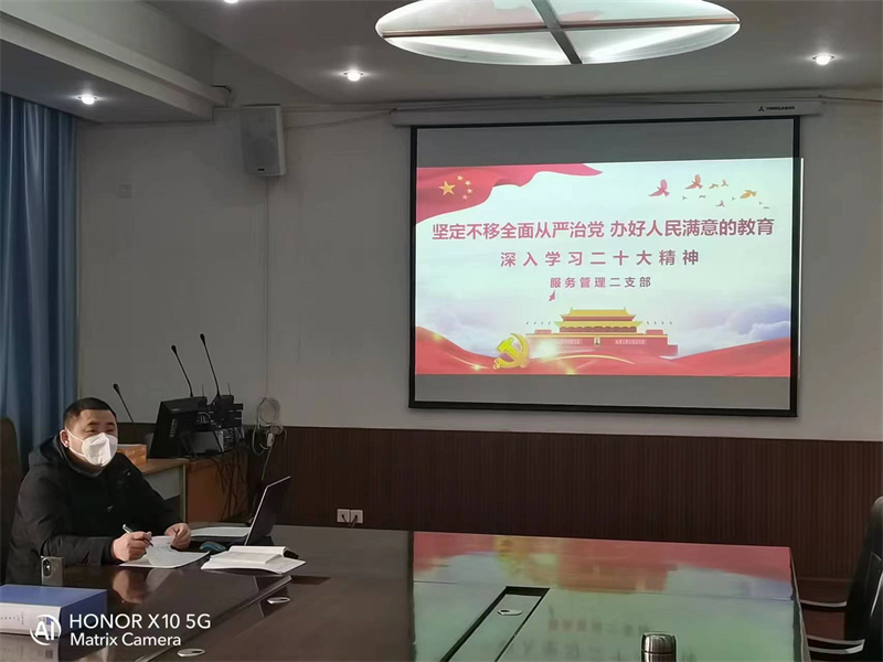为落实学院关于开展学习贯彻党的二十大精神工作部署,12月20日,服务管理二支部线上线下同步开展深入学习党的二十大精神党课。