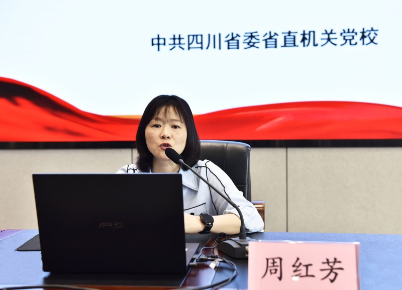 党课上,周红芳聚焦主题教育总要求,以《深入学习贯彻习近平新时代中国特色社会主义思想》为题,从习近平新时代中国特色社会主义思想形成基础、科学内涵以及在四川的实践等三方面为全体党员进行了详细解读。
