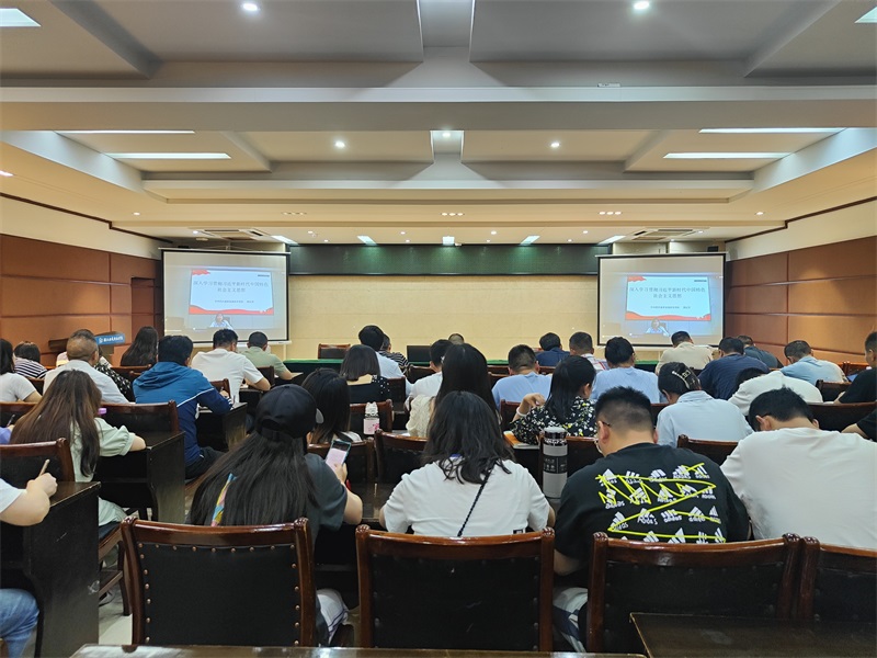 根据学院关于学习贯彻习近平新时代中国特色社会主义思想主题教育的统一部署和工作安排,5月16日,学院邀请省委省直机关党校周红芳为领导班子成员、全体党员讲授专题党课。党委书记黎文勇主持,学院两校区共计150余名党员通过“线上+线下”方式开展学习。