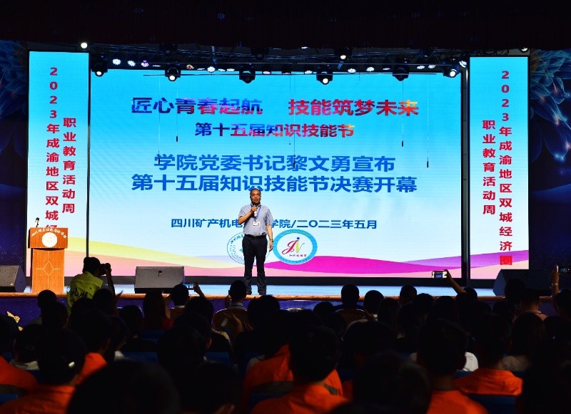 5月19日上午,2023年成渝地区双城经济圈职业教育活动周——四川矿产机电技师学院第十五届知识技能节决赛开幕式在学院礼堂举行,学院院长刘靖、党委书记黎文勇、副院长肖前蔚、张志、郑常翔、张兴顺、纪委书记熊燕出席开幕式,各二级机构负责人、部分师生参加开幕式,开幕式由副院长董维主持。