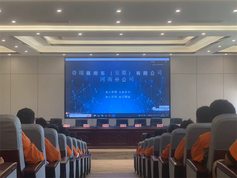会上,奇瑞商用车(安徽)有限公司河南分公司HR朱洁莹对学生实习企业情况进行介绍,让同学们对即将开始的企业实习生活充满期待。