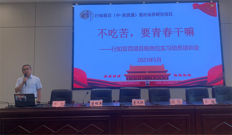 四川省陶行知研究会职业教育专业委员会理事长助理向导,行知双百(中高贯通)人才培养研究项目负责人、行知双百(中高贯通)人才培养研究项目组办公室主任何冬梅,行知双百(中高贯通)人才培养研究项目组成员李博、四川驰仲教育总经理王旭,副总经理梅晋豪,以及本次参与实习班级班主任参与本次会议。