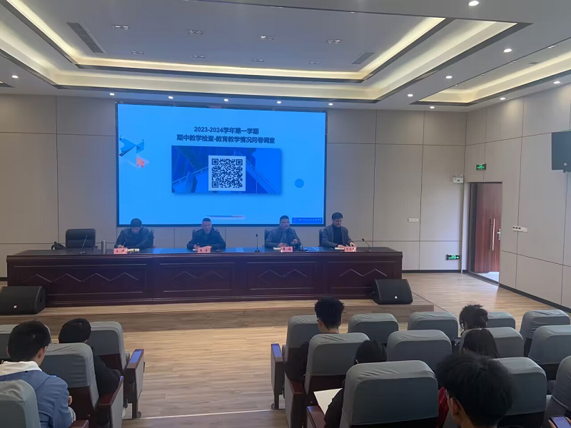 会上,学生代表通过扫描二维码完成调研问卷,问卷内容涵盖了教学运行与管理、理论和实践教学、教学评价及师德师风等方面的若干问题。