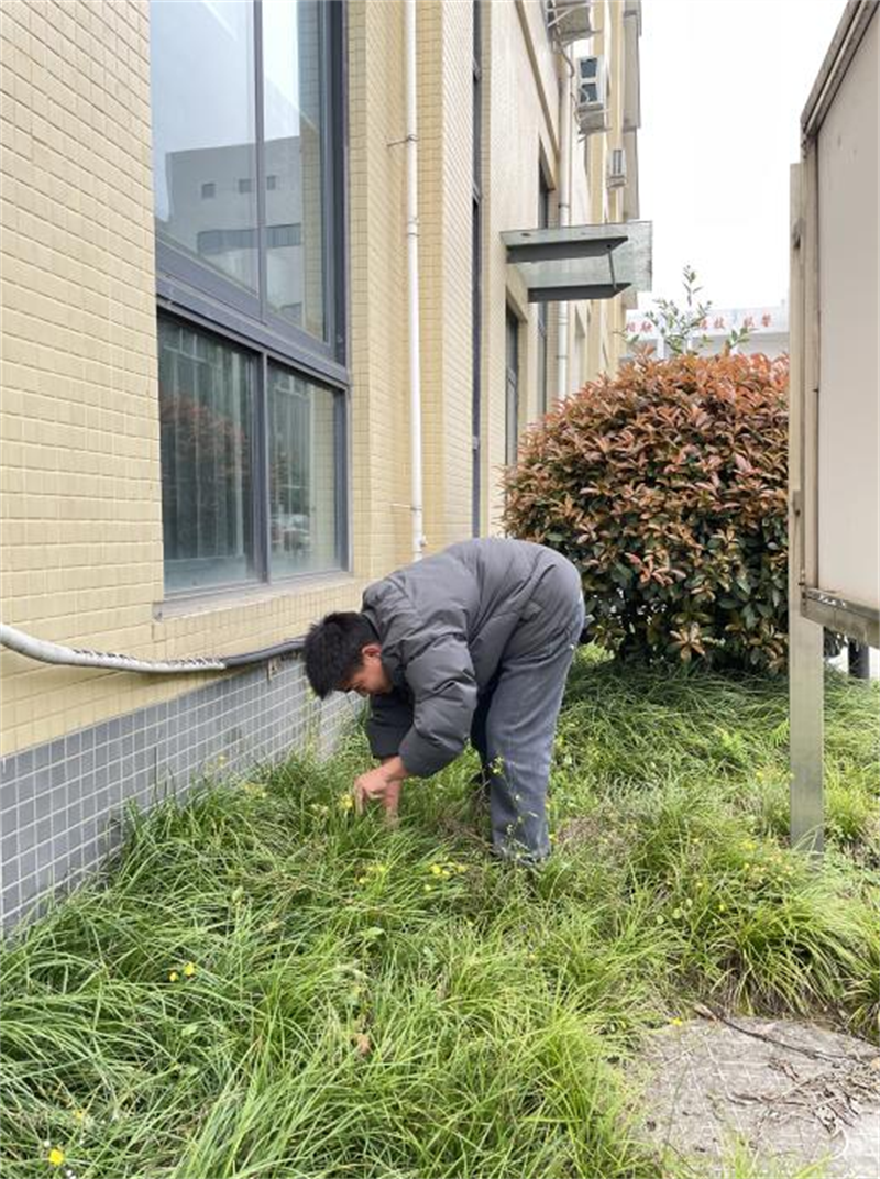 除了对教室内部的清洁,同学们还走出教室,对实训楼周边的绿化带进行了细致的垃圾清理工作,他们认真捡拾绿化带中的垃圾,并进行分类处理,展现出了强烈的环保意识和责任感。