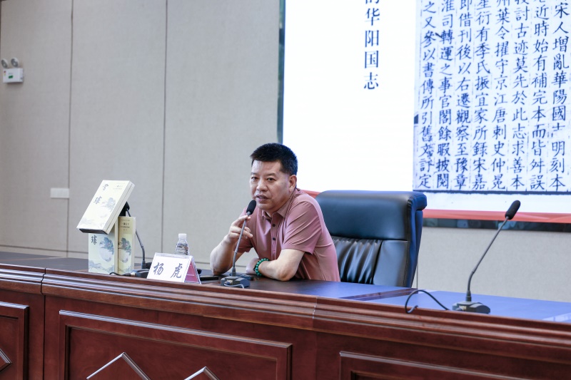 从三星堆到都江堰,从二十四史到地方县志,杨虎以他广博的学识为大家介绍了许多史学知识,讲述了史学的重要性。紧扣常璩波澜壮阔的人生历程,分阶段讲解了他虽生逢乱世、却以深厚的爱国情怀和坚韧不拔的意志力书写了在中国史学领域享有盛名的《华阳国志》的传奇经历,带领大家时隔一千六百多年共同追寻常璩的文人风骨和远大志向。杨虎以常璩的事迹鼓励同学们,要珍惜青春年华,努力学习科学文化知识,在实现中华民族伟大复兴中国梦的新征程上书写属于自己的辉煌。