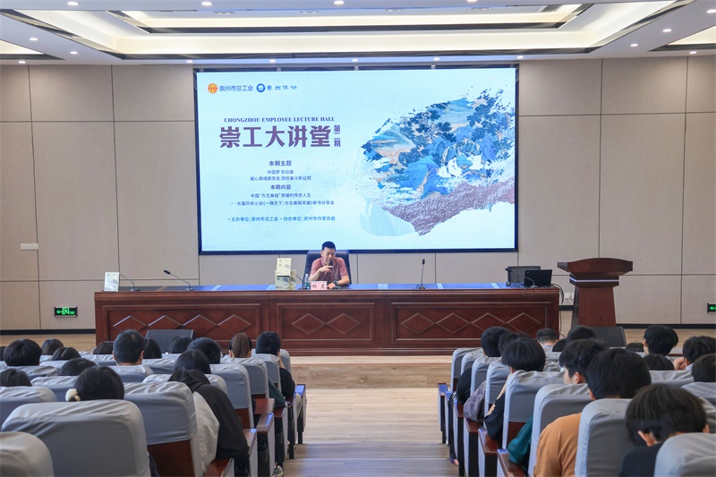 4月25日,由崇州市总工会主办、崇州市作家协会承办的第二期“崇工大讲堂”在我院第三学术报告厅举办。崇州市作协主席杨虎以“凝心铸魂跟党走,团结奋斗新征程”为主题,以其最新力作——长篇历史小说《一隅天下:方志鼻祖常璩》为主线,为现场150名学生代表奉献了一场精彩讲座。