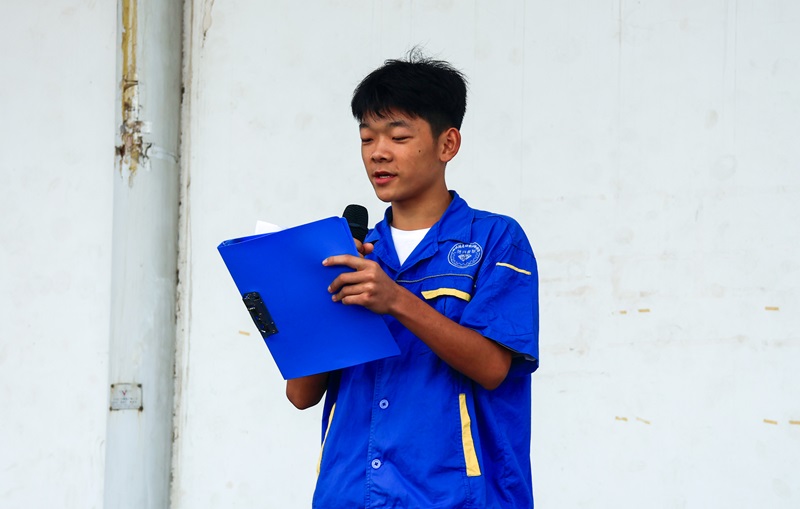 最后,建筑工程管理23211班学生徐杰作为获奖代表上台发言。他分享了自己孝顺父母、关爱家人的故事,表达了对学校和社会关爱的感激之情。同时,他坚定地表示将继续坚守和传承孝道,将“百善孝为先”这一传统美德发扬光大,让更多人感受到孝道的温暖与力量。