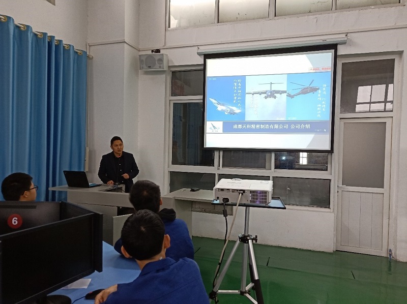 刘垚总经理详细介绍了成都天科精密制造有限责任公司的战略背景和未来企业发展方向等情况。他表示公司高度重视此次订单班的成立,未来将投入大量时间和精力与学院共同打造订单班,并代表企业向同学们提出新的要求和目标,同时展示学院历届优秀毕业生目前在企业的工作情况和所作出的成绩,鼓励同学们在校期间珍惜机会,利用学院和企业提供的学习和实践平台努力学习。