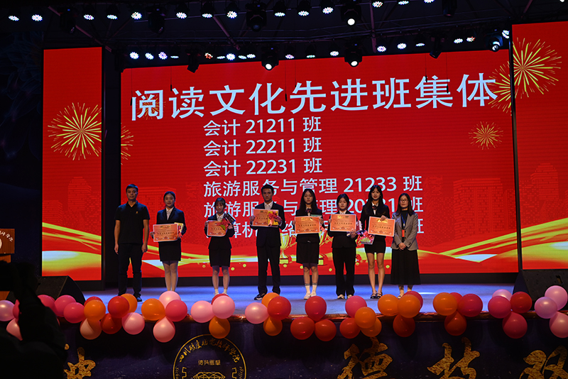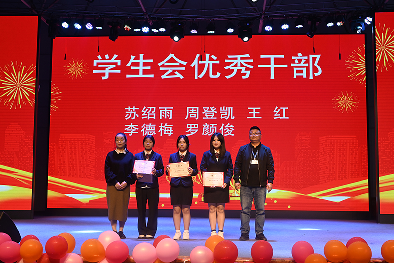 表彰活动在雄伟高亢的国歌声中拉开帷幕。赵娜宣读了《四川矿产机电技师学院经济管理系关于表彰2022-2023学年综合素养进步学生、先进个人及团体的决定》,并向受到表彰的班级和个人表示热烈的祝贺。应邀嘉宾、学院领导、系部教师依次上台颁奖。