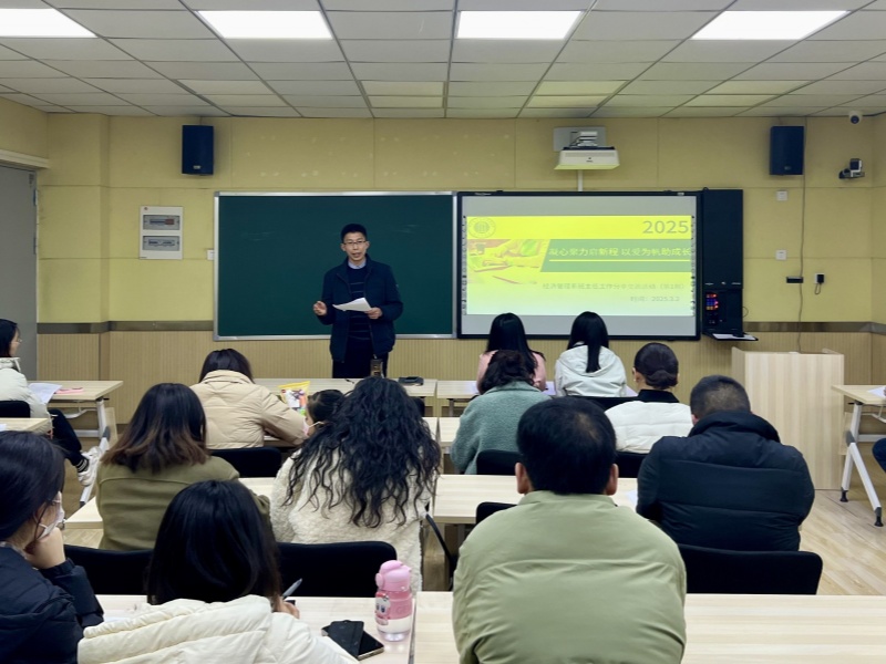 为贯彻落实学院2025年春季学期开学学生工作会议精神,进一步提升系部班主任队伍的整体素质与工作效能,增强团队凝聚力,构建班主任互助支持网络,经济管理系于3月2日在智能楼203录播室举行班主任工作分享交流活动启动仪式,并开展以“凝心聚力启新程,以爱为帆助成长”为主题的第1期分享交流活动。