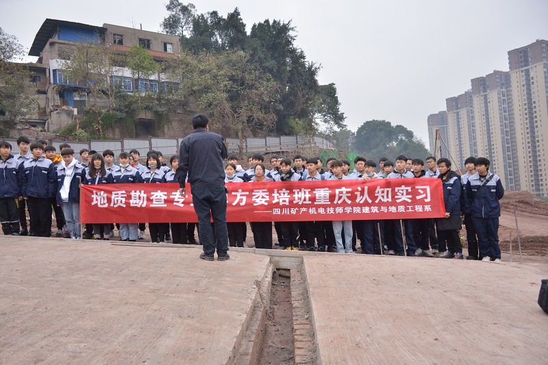 重庆倬方岩土勘察责任有限公司董事长姜来峰带领我院师生参观地质勘察施工现场,并请项目工程师对学生进行讲解和指导。重庆电视台、重庆北碚区电视台全程跟踪报道并且对师生代表进行了专题采访。