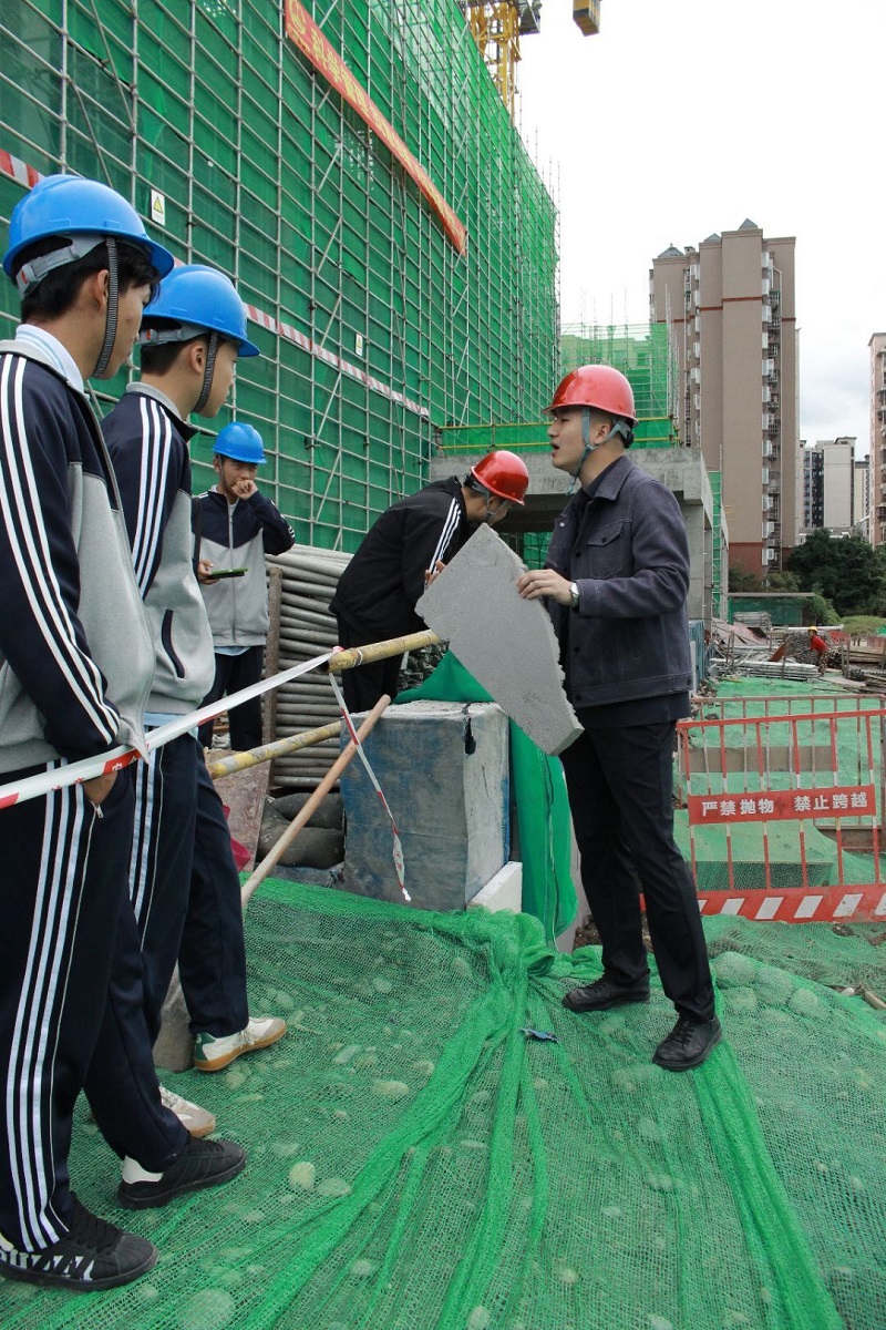 本次实习围绕“理论与实践相结合”目标展开。中午12时,师生清点人数、进行安全教育后统一出发。抵达工地,项目负责人介绍工程概况与项目管理架构,重点开展入场安全教育,为后续现场实习筑牢安全基础。