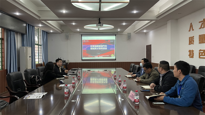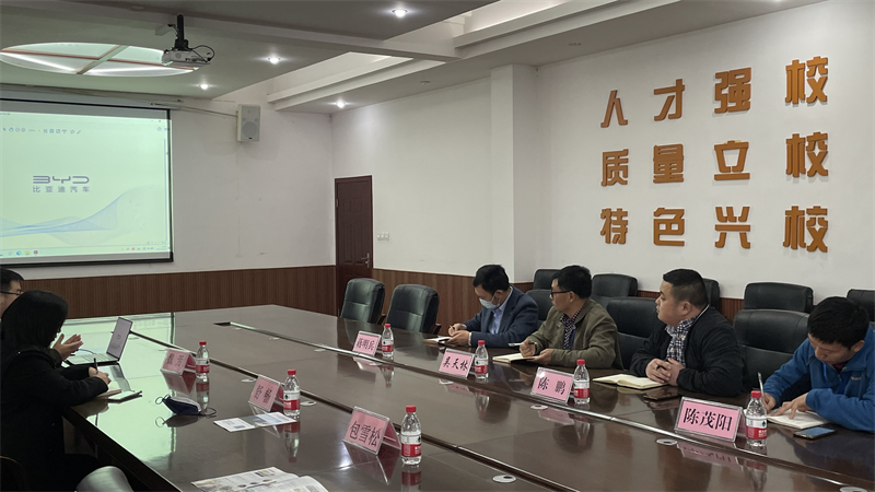 舒畅介绍了“比亚迪新能源汽车精诚英才培育项目”及比亚迪汽车、轨道交通、电子、新能源等四大支柱产业的发展状况及前景、科技创新进展等情况,希望与学校建立长期有效的合作机制,共同推进产教融合、校企合作向纵深发展。