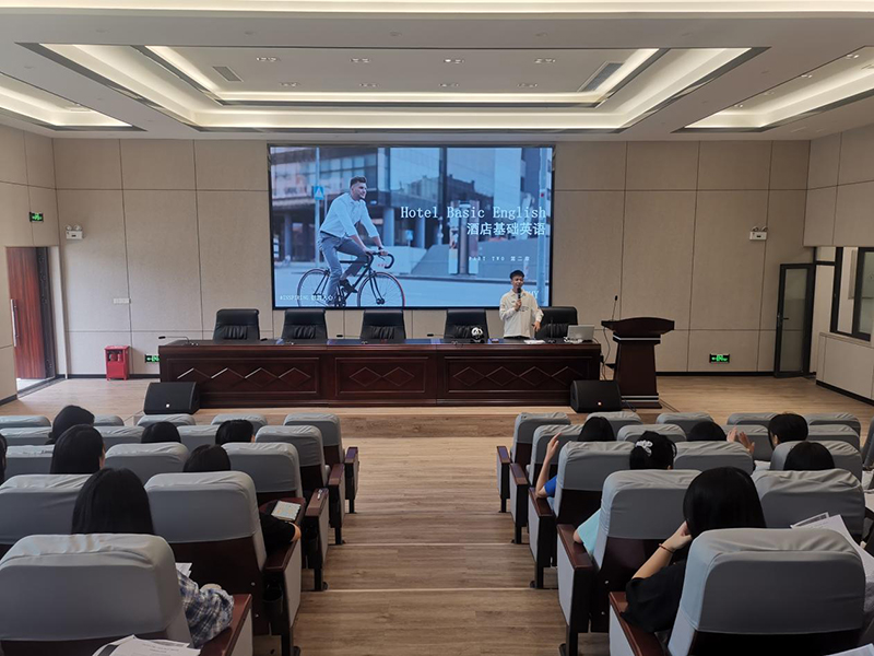 为深化校企合作,促进产教融合,9月1日上午,学院经济管理系邀请洲际集团旗下成都机场假日酒店培训经理周航在第三学术报告厅对旅游服务与管理专业学生进行第二期酒店英语培训。