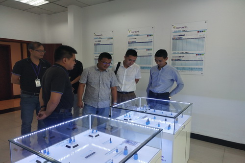 接下来,在成都锐点精密工具有限公司厂长罗兆钧先生陪同下,肖副院长一行对厂区进行了参观,并对企业文化、产品展示、品质管理及生产情况等进行了详细的了解。