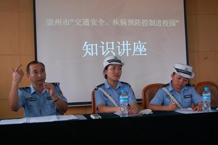 新学期伊始,为了进一步加强同学们的交通安全意识和疾病防控意识,2009年9月9日下午,校学生科、保卫科与崇州市交警大队、疾病防控中心在学校阶梯教室联合举办了“交通安全,疾病预防控制进校园”知识讲座,学校各班班长、团支部书记、生活委员等200余名同学参加了本次知识讲座。