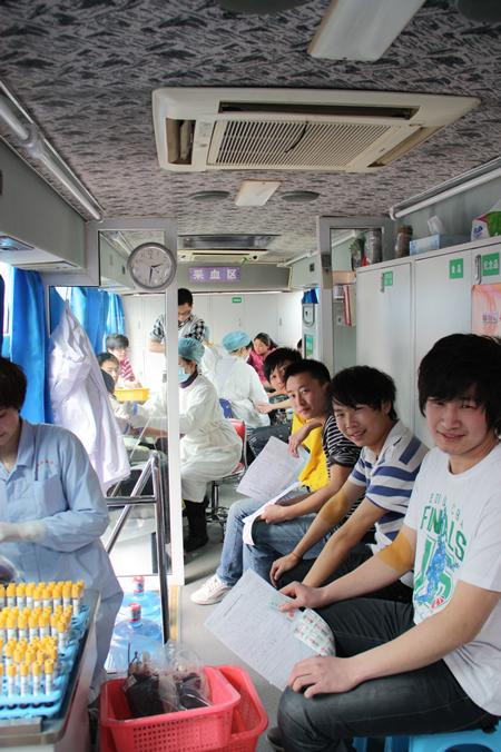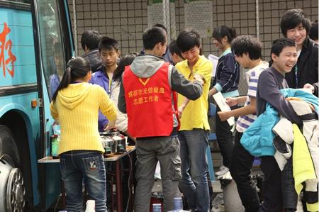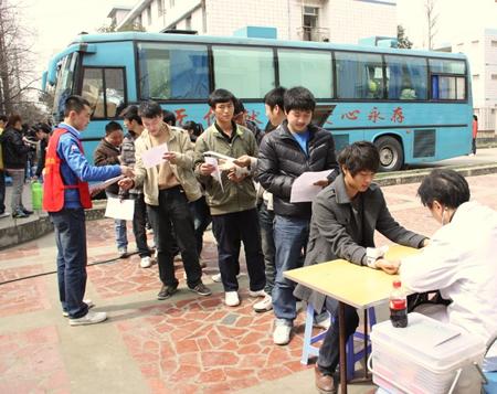 3月8日中午,成都市血液中心献血车抵达我校,活动正式开始。医护人员的精心工作,学生党小组率领下的16名学生志愿者热情周到的服务,让整个献血过程秩序尽然。多位老师也参与了此次活动,为学生们树立了“无偿献血,无上光荣”的好榜样。很多同学都是第一次参加无偿献血活动,大三的施同学在接受学校记者采访时说:“这是我首次献血心里既紧张又兴奋,能为无偿献血事业出一份力,我感到非常光荣,也许我的这些血液,就能拯救一个生命,以后还会参与无偿献血活动。”旁边的李同学则说:“虽然这也是她第一次献血,但一想到自己的血液会在别人的身体里流动,救人性命,她就一点也不紧张了。”验血过程中,也有部分同学因为种种原因不能献血,大二的王同学拿着自己不合格的体检单说:“虽然这次没有合格,我会尽快养好身体,争取下次献血成功。”活动一直持续到下午5点多钟,共有184名同学符合各项检查指标参与了无偿献血,献血量达55200毫升。