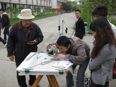4月19日至4月24日,地质0901、0801班进行了测量专周实习。两班同学分为五个小组,在宋老师的指导下,分别进行了图根导线测量、图根水准测量和地形测量三项实习内容。在一周的实习过程中,同学们白天利用各种测量仪器进行外业观测,晚自习在教室进行内业数据处理和编写实习报告。各小组提交的外业、内业成果质量较高,测量精度均符合限差要求,达到了实习目的。