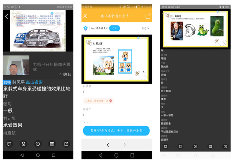 狠抓落实,有序开展线上教学活动。为进一步保障教学质量,学院统一制定了教师线上教学规范、学生线上学习守则,按照教学统一安排,全院师生严格遵照该规范积极参与线上教学活动。课后,老师们也不断总结、积极交流、相互提高。通过统计和整理,教师大多采用云课堂、QQ电话、腾讯课堂、雨课堂等直播互动的线上教学模式,包含课堂签到、直播讲授、适时互动、辅导答疑、教学效果反馈等各个环节,教学效果不亚于面对面授课。