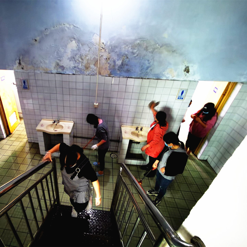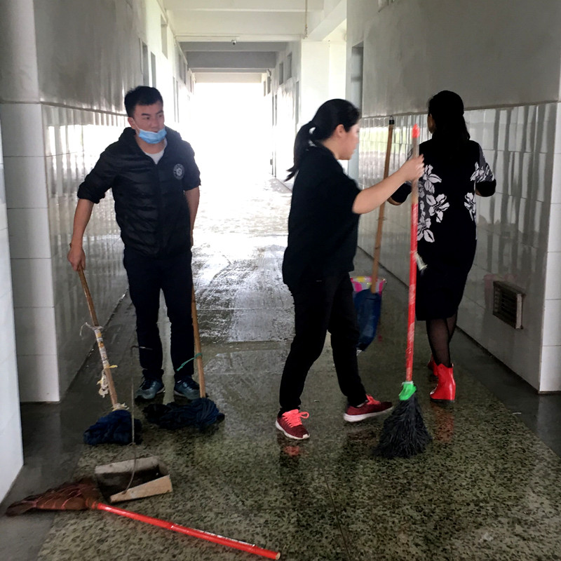 在这“战疫”的关键时刻,党员老师纷纷响应号召,站出来,顶上去,真正体现责任担当,彰显教育情怀,凝聚强大正能量。党员先锋队的老师们将原本布满蛛丝和霉垢的厕所打扫一新,不少人的手上被挂出伤口,鞋袜全湿,身上眼里全是灰,但他们仍然不休息、不懈怠,下午,党员先锋队成员又协助打扫了健身房。12日下午,全体员工还协助打扫了201教室,大家都通力合作,为这次打扫工作交出优异的答卷。