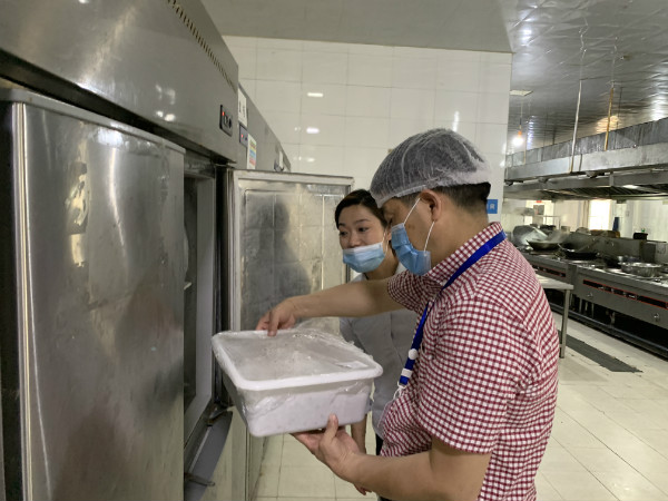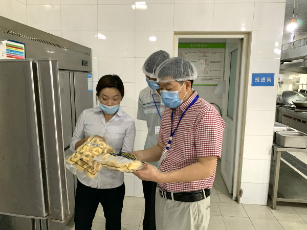 为保障全院4000余人的食品安全,崇州市市场监管局多次到现场检查和指导,林院长坚持每周到食堂检查工作(食品原材料进货渠道、原材料保质期、环境卫生、消毒工作),对发现的问题立查立改,并反复强调食品卫生安全的重要性,提高食品经营单位所有人员的安全卫生意识;按要求学校对从业人员进行安全和规范操作方面的培训,专业医生对从业人员进行卫生常识进行培训;校医、学校食堂管理员每天对食堂进行检查,检查内容包括查食品留样、食品进货渠道(台账、索票索证工作、配送食品公司资质)、食品保质期、食品标签是否规范、卫生情况等。若发现问题,责令食品经营单位立即整改,并对整改内容进行记录存档。