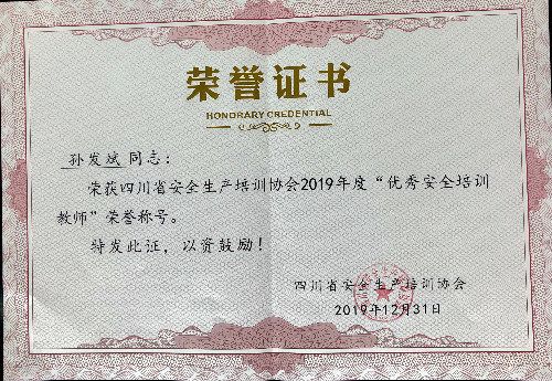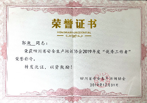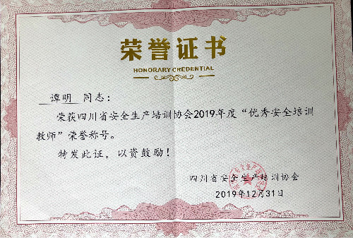 近日,四川省安全生产培训协会第一届第六次会员大会在成都安全科技大厦召开。会上对2019年度优秀个人及单位进行了表彰。我院谭明老师、孙发斌老师及郭溦老师分别获得“优秀教师”及“优秀工作者”。