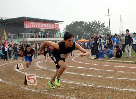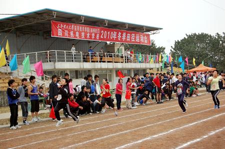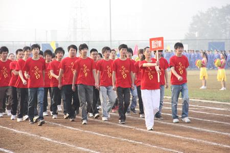 我校2010年冬季田径运动会于11月4日—5日召开。4日上午8:30,伴随着秋日清晨的朝露,运动会开幕式准时开始。开幕式入场式上,在激昂的音乐声中,国旗与校运会旗首先入场,紧随其后的是彩旗队和花束队,然后是各班级代表队,他们着装统一、步伐整齐,有的手举横幅标语,有的手拿气球,喊着响亮的口号,依次走过主席台,同学们充满自信,充分展现了机电校学子意气风发,健康向上的精神面貌,为运动会增添了绚丽的色彩。开幕式由主管教学的肖前尉副校长主持,校长林仕发致开幕词,在运动员代表和裁判员代表宣誓完毕后,学校党委书记徐振川宣布运动会开幕。随后各项比赛按照男子甲、乙组、女子组三个组别分别展开了激烈角逐。运动场上,运动员们英姿飒爽,奋力拼搏,全力以赴;运动场下人头攒动,热闹非凡,啦啦队使出浑身解数为自己班的运动员呐喊助威;主席台上,广播员不时宣读着即将进行的比赛项目和最新比赛信息。哨子声、呐喊声、掌声、欢呼声、广播声交织成了一支动听的运动交响曲。