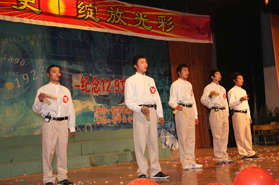 12月9日晚上7点,由校学生科和校团委主办,学生会和社团承办的“回眸历时,绽放光彩”纪念12.9文艺晚会在校礼堂隆重举行。