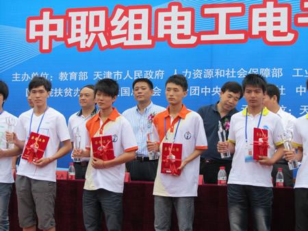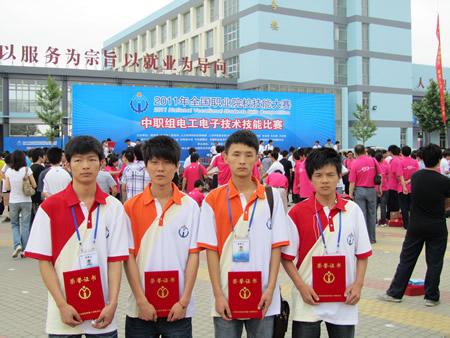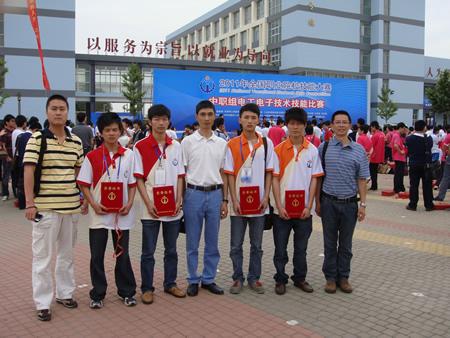 在6月26日结束的由教育部、人力资源和社会保障部等15个部委联合举办的2011年全国职业院校技能大赛电工电子组比赛项目中,我校学生何仕泽、甘竹林、赵伟、胡海宾代表四川省参赛,发挥优秀,全部获奖。其中何仕泽、甘竹林获得机电一体化设备组装与调试项目三等奖,赵伟、胡海宾分别获得单片机控制装置安装与调试项目三等奖。