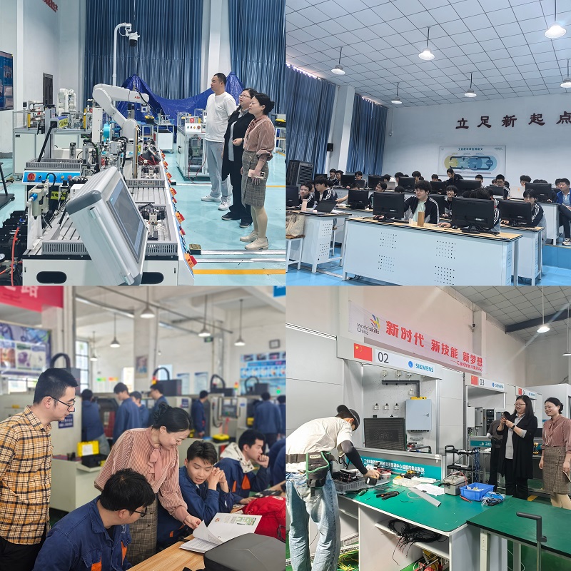 成都工业职业技术学院来宾先后参观了机电工程系CAD/CAM综合实训室、数字孪生智能生产线、工业机器人实训中心,以及汽车工程系新能源汽车整车实训车间。