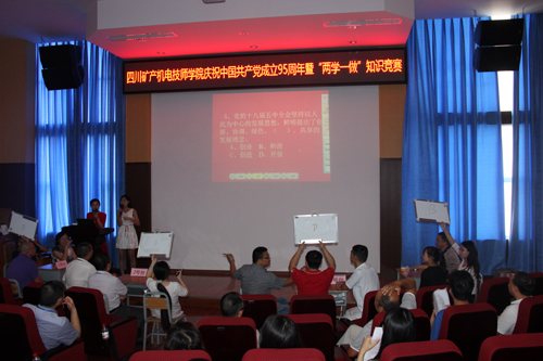 为了深入开展“两学一做”学习教育,不断加强党性锻炼,增强学员党员意识,7月1日下午,由学院党委举办的“庆祝建党九十五周五暨两学一做知识抢答比赛”在学院学术报告厅举行,本次活动共有来自学院党群支部、行政支部、教学一支部、教学二支部4支代表队的60多名党员参加比赛。