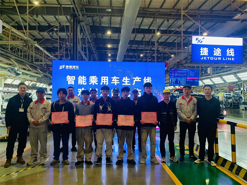 在“捷途”汽车生产线上工作的汽车工程系学子