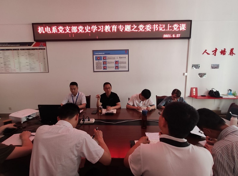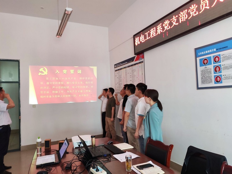 此次党史学习教育专题会议上还组织大家重温入党誓词,并对支部五月举行的“学党史、感党恩、跟党走——机电工程系微党课进课堂”活动进行了全面总结,通过全体支部党员深入学生课堂,以微党课的形式广泛且深入为系部学子讲解了我党的奋斗史,让学生明理增信的同时也明确了未来的奋斗目标。