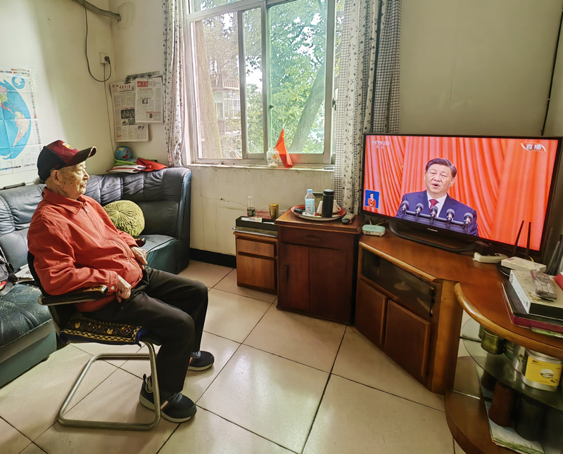 96岁老党员陈沛森同志听取报告