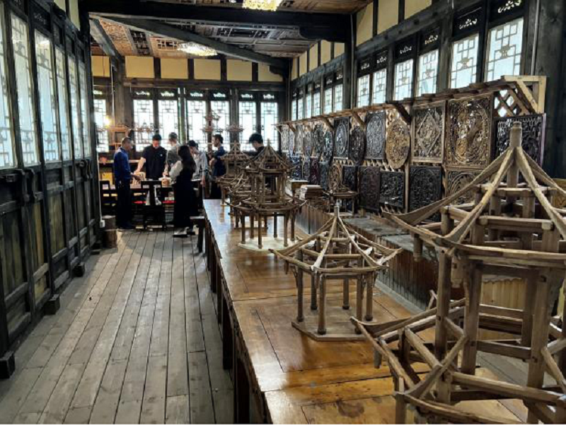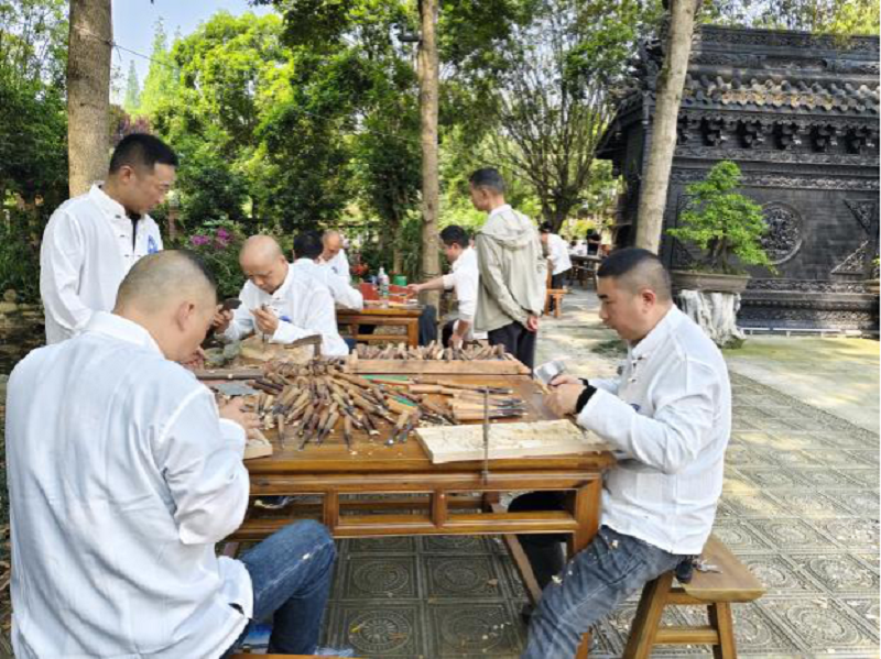 本次活动恰逢该博物馆正举办成都百万职工技能大赛的崇州木雕工比赛,参加活动党员同志先开展了政治学习,学习习近平总书记关于职业教育的重要论述,然后结合古建筑及雕刻工艺现场一边参观、一边研讨,思考本系建筑专业发展方向能否结合古建筑进行专业拓展。
