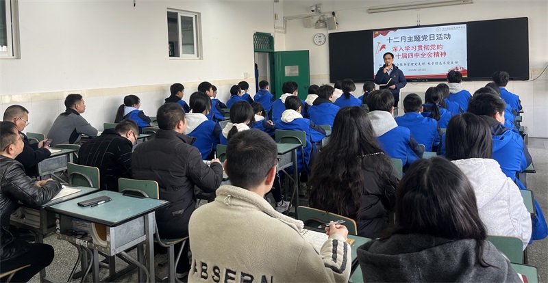 12月2日,电子信息系党支部与新都校区综合服务管理党支部联合开展十二月主题党日活动,共同学习党的二十届四中全会精神。活动以“微党课”形式进行,电子信息系党支部黄子玲为党员上课。