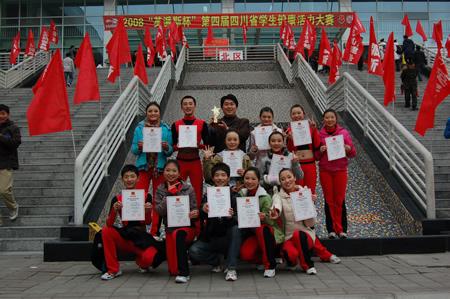 12月5日——12月7日在成都体育学院举行的“2008第四届四川省健康活力大赛”中,我校健美操代表队作为一支年轻队伍在比赛中脱颖而出,一举夺得“系列校园青春健美操规定套路”一等奖。