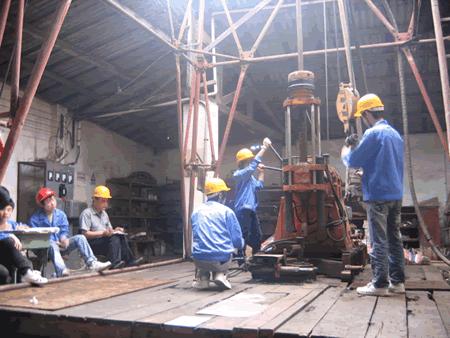 根据水文地质、地质找矿专业教学计划安排,为适应地勘市场需求和拓宽专业教学内容以及理论联系实践教学的需要,我校已于2009年4月对水文地质大专0701班学生进行地勘钻探施工操作、岩心编录实习,目前正对岩土工程地质中专0701班开展为期两个月的操作实训,内容包括有:地勘、岩土钻孔施工钻进操作训练;泥浆配制与性能测定实验;钻机、泥浆泵折装操作等实际操作训练。