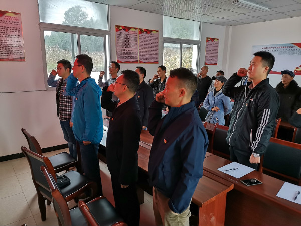 在月会中第一书记带领大家重温入党誓词、学习《习近平谈治国理政》第三卷,并就下一阶段工作做了安排。