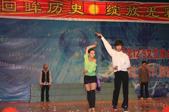 12月9日晚上7点,由校学生科和校团委主办,学生会和社团承办的“回眸历时,绽放光彩”纪念12.9文艺晚会在校礼堂隆重举行。