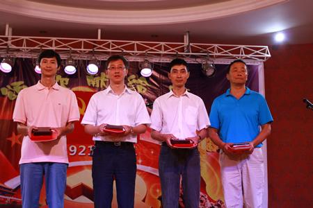 上午9点30分,庆祝活动在嘹亮的国歌声中拉开序幕,学校党委书记徐振川同志首先发表了热情洋溢的致辞,接着对获得 “先进基层党组织”、“优秀共产党员”、“优秀党务工作者”等各级荣誉的集体和个人进行了表彰,三名新入党的同志还面对鲜艳的党旗庄严宣誓,在人生的旅途上记下了浓墨重彩的一笔。随后,在校党委班子一首《红星歌》的带领下, 7个支部将经过静心编排和准备的节目陆续进行了表演,《没有共产党就没有新中国》、《国家》、《走向复兴》、《共产党人》等一首首经典红歌,唱响了时代的主旋律,唱出了机电校人对党对祖国的热爱之情。