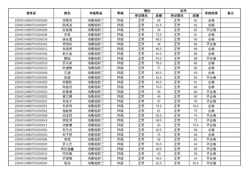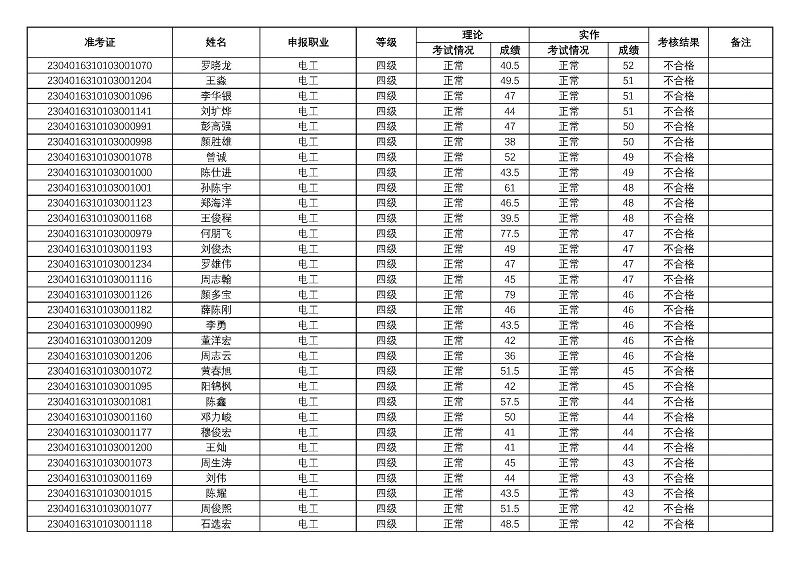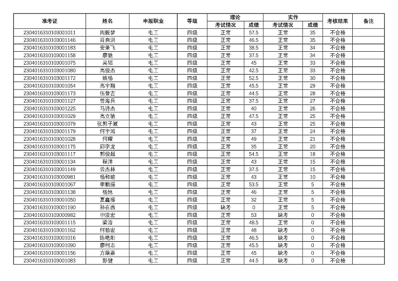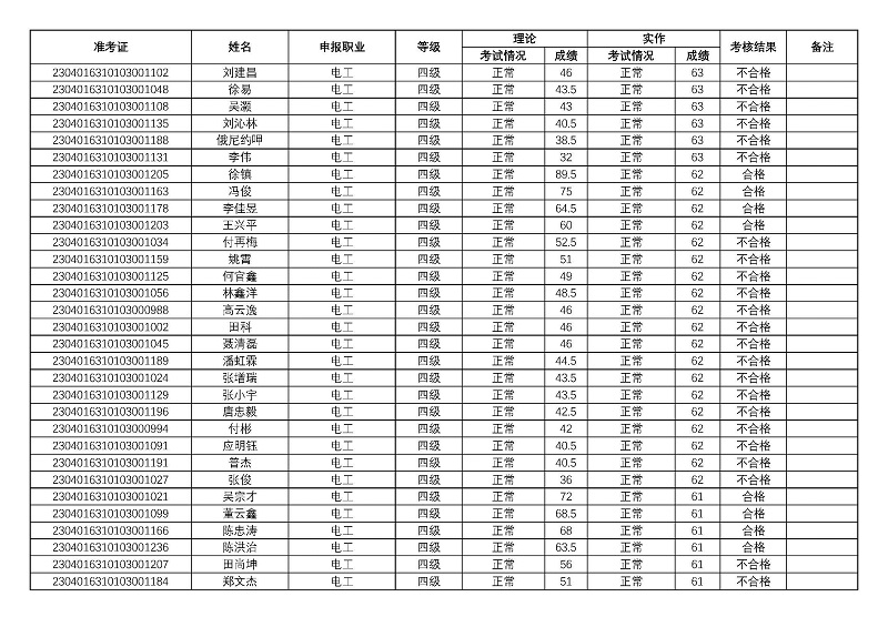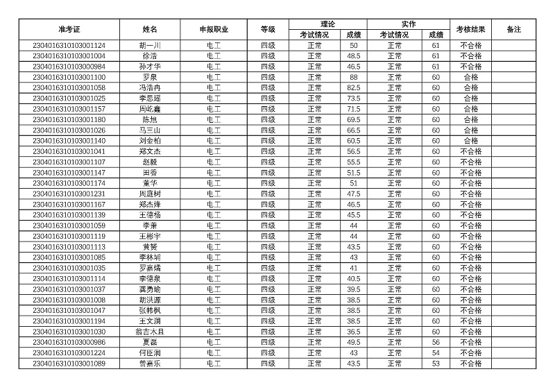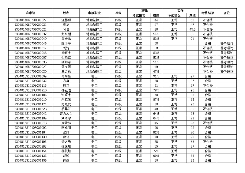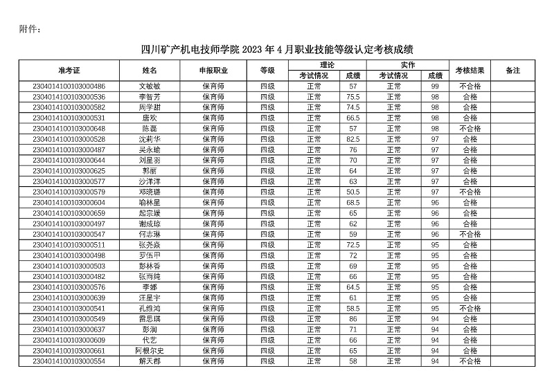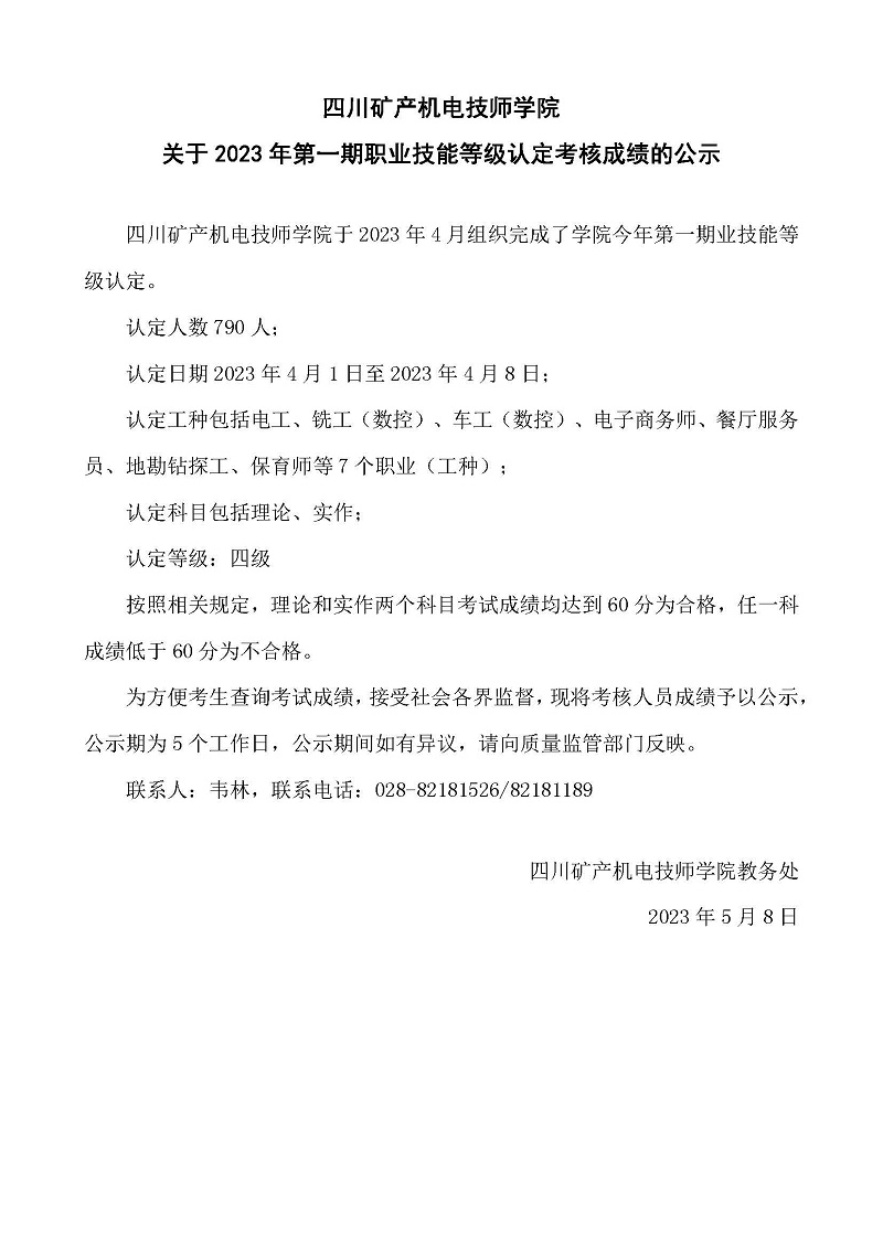 四川矿产机电技师学院关于2023年第一期职业技能等级认定考核成绩的公示