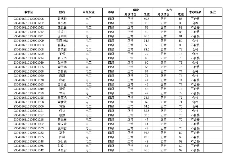 四川矿产机电技师学院关于2023年第二期职业技能等级认定考核成绩的公示