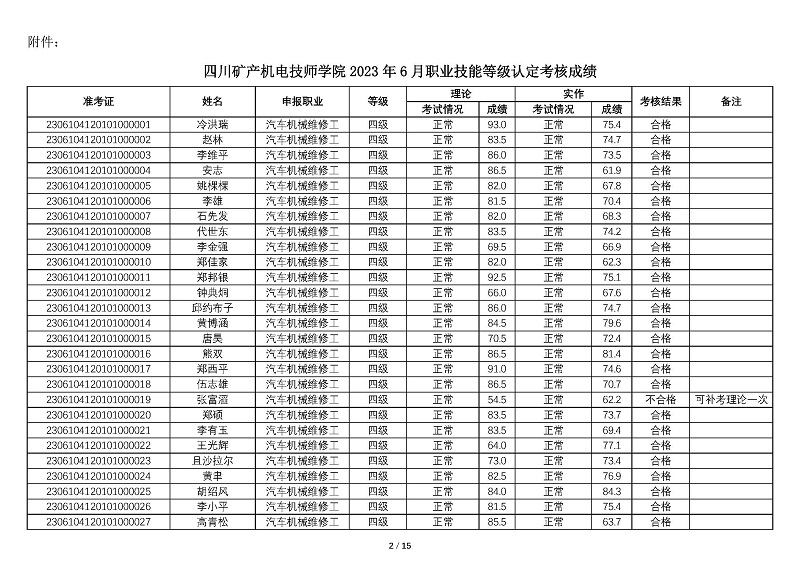 四川矿产机电技师学院关于2023年第二期职业技能等级认定考核成绩的公示